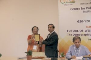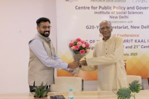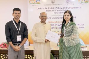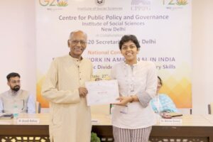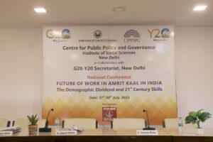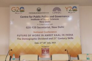 The Centre for Public Policy and Governance, Institute of Social Sciences in collaboration with the G20-Y20 (Youth 20) Secretariat organized a 2-Day National Conference “Future of Work in Amrit Kaal in India: The Demographic Dividend & 21st Century Skills” on 27th-28th July 2023 at DELNET Campus, Vasant Kunj. More than 50 research papers from young scholars were presented. The conference had eminent speakers like Padma Shri awardee Prof. Najma Akhtar as the Chief Guest and Prof. T.G. Sitharam, Chairman, All India Council of Technical Education (AICTE), as the Guest of Honour. Mr. Falit Sijariya, Head of Delegation, Youth20 and Ambassador Dr. Amarendra Khatua, Retd. Secretary, Ministry of External Affairs participated in the deliberations of the conference.