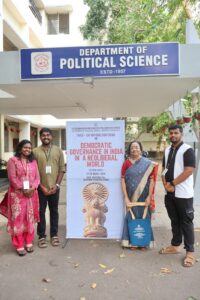 Prof. Rumki Basu recently delivered the Keynote Address at the prestigious National Conference on “Democratic Governance in India in a Neoliberal World,” organized by the V. K. Sukumaran Nayar Chair for Parliamentary Affairs under the Department of Political Science at the University of Kerala. Held from March 27 to 29, 2026, the conference provided a platform for enriching deliberations on critical themes, including federalism in transition, digital public infrastructure, marginalization, and the evolving nature of democratic participation.